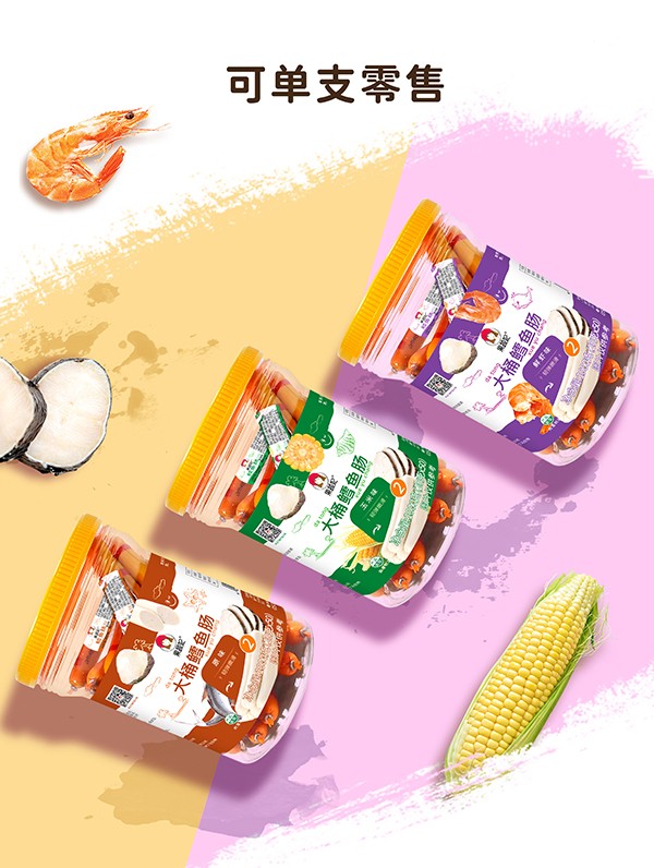 果蔬妃【大桶鱈魚腸】營養(yǎng)豐富,韌彈嫩滑,不添加人工香精、色素和防腐劑,在堅持安全配方的基礎(chǔ)上,單支獨立條碼,真正可以單支銷售!一桶50支,20克每支,有原味、玉米和鮮蝦3種口味可選!