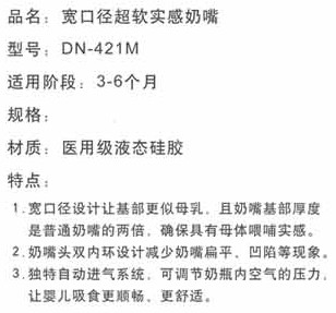 本品采用高級食品級矽膠(Liquid Silicone)制成,無毒、無味、耐高溫120℃可消毒、極好韌性、不易破、更耐用。本品對嬰兒牙床的發(fā)育和牙齦的保護有特殊效果。能促進嬰兒牙齒的正常發(fā)育及臉部肌肉運動。