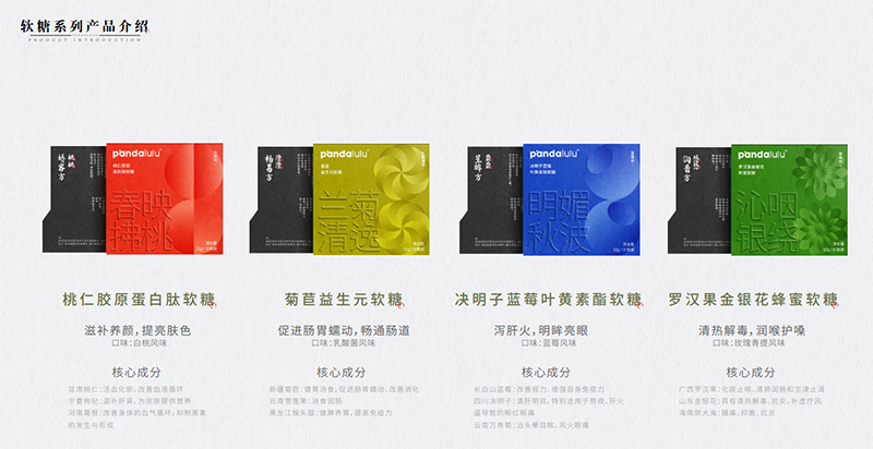 pandalulu產(chǎn)品理念:解構(gòu)中醫(yī)組方,精準匹配當下國人保養(yǎng)需求,匯集全國優(yōu)秀原廠地食材,采用前沿生物科技,打造集美感、新鮮感、文化感健康食品,引領(lǐng)東方健康時尚。