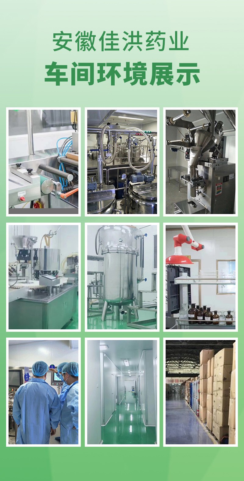 安徽佳洪健康產(chǎn)業(yè)有限公司位于全球最大的中藥材集散中心安徽亳州市,占地4600平方的現(xiàn)代化生產(chǎn)基地,其中生產(chǎn)車間占地2300平。倉儲面積2300平。國際先進的生產(chǎn)檢測設(shè)備,固體制劑、口服液、軟膠囊、保健用品、消毒用品、醫(yī)療器械、代用茶等生產(chǎn)車間,可生產(chǎn)加工片劑、硬膠囊劑、軟膠囊劑、顆粒劑、粉劑、凝膠等劑型,提供最完善的一站式OEM加工服務(wù)。獨立的工藝布局走向,能夠?qū)崿F(xiàn)多品種、多劑型的同時聯(lián)動生產(chǎn)和單一品種的獨立生產(chǎn)。創(chuàng)造獨立的品牌及品牌OEM基地。
