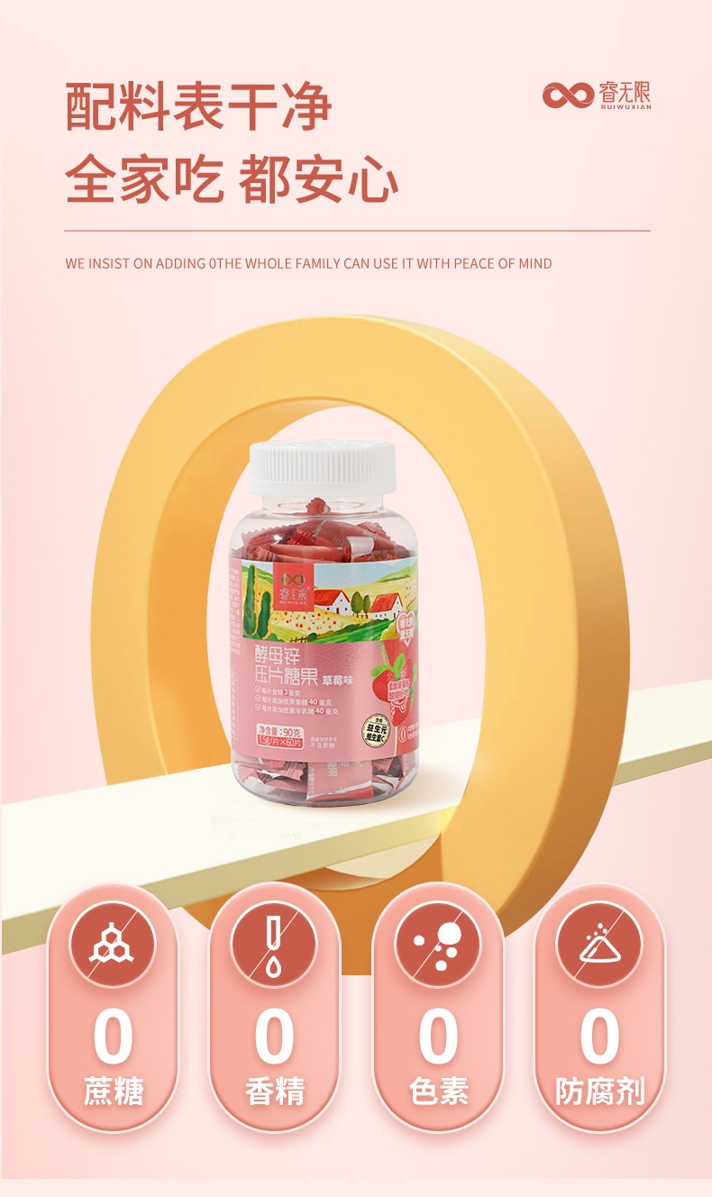 睿無(wú)限酵母鋅壓片糖果60片