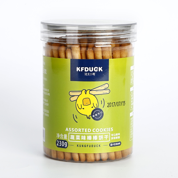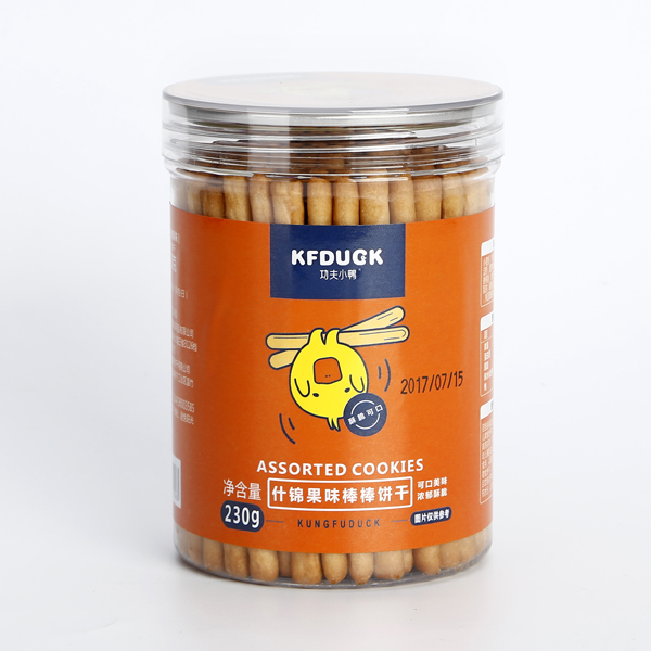 功夫小鴨牛奶什錦水果蔬菜香蕉牛奶味棒棒餅干新包裝230g產(chǎn)品展示